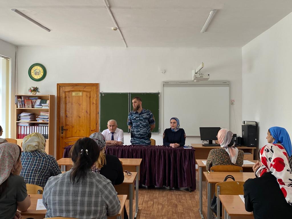 по профилактике детского дорожно-транспортного травматизма, повышения культуры участников дорожного движения было проведено общешкольное родительское собрание на тему "родителям о безопасности дорожного движения".На собрании присутствовал инспектор по пропаганде БДД ОГИБДД ОМВД России по Наурскому району лейтенант полиции И.М. Алиев, который в своем выступлении указал на необходимость усиления совместных действий образовательного учреждения и законных представителей обучающихся (родителей) по предотвращению ДТП. В первую очередь это касается правил поведения на пешеходном переходе, дисциплинированности на улице. Также выступила заместитель директора по воспитательной работе А.С.-М. Алхастова . Она подчеркнула, что тема ПДД всегда актуальна, особенно в летний период. И нужно сделать все, чтобы улицы и дороги были безопасными для наших детей! Необходимо чтобы дети знали правила дорожного движения, дорожные знаки и прочие тонкости.